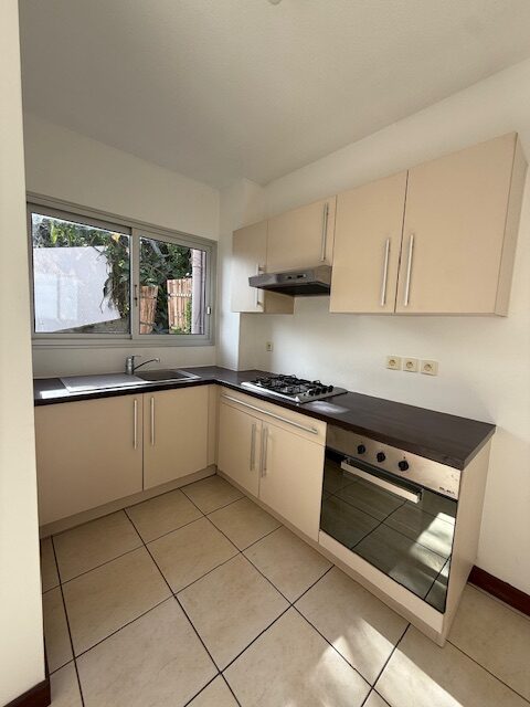 Appartement lumineux de type F2 de 45 m² avec terrasse couverte et jardin.