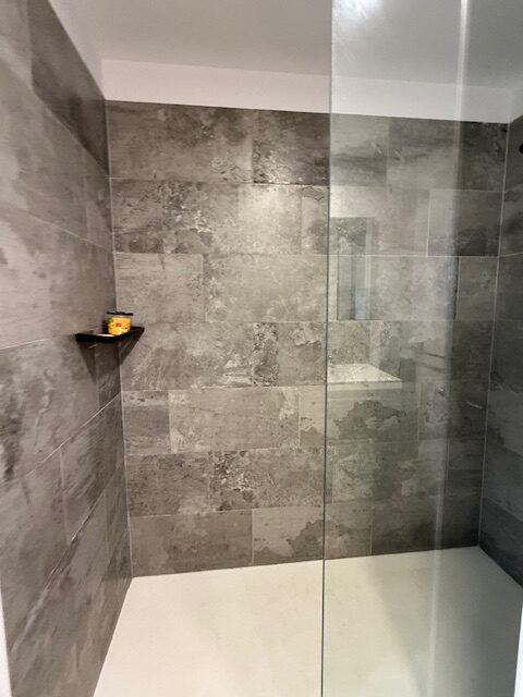 - Une salle d’eau donnant sur une petite terrasse couverte