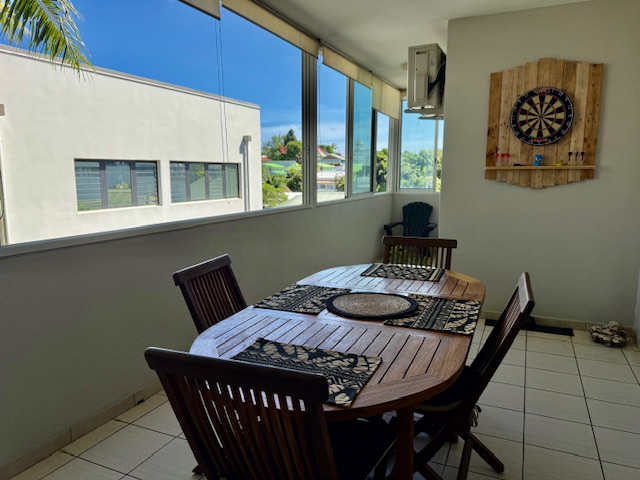 • une salle à manger / séjour donnant sur une terrasse fermée