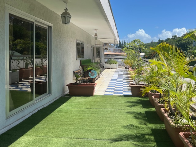Grand séjour/salle à manger avec cuisine Américaine donnant sur une belle terrasse.