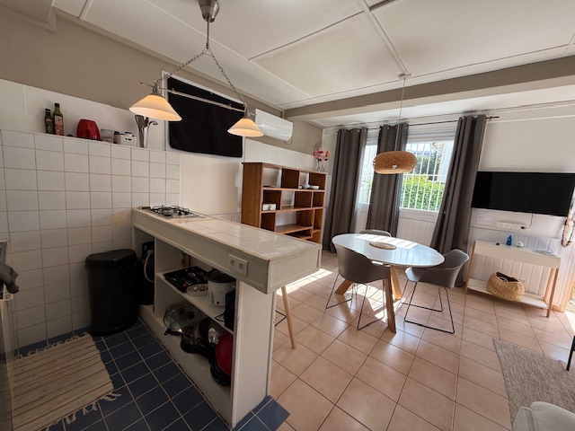 1 séjour/SAM, 1 cuisine, 3 chambres climatisées, 1 bureau, 1 SDB, 1 SDE, 1 WC (possibilité d’en créer un second), 1 buanderie, places de parkings attenantes, 1 terrasse agréable.