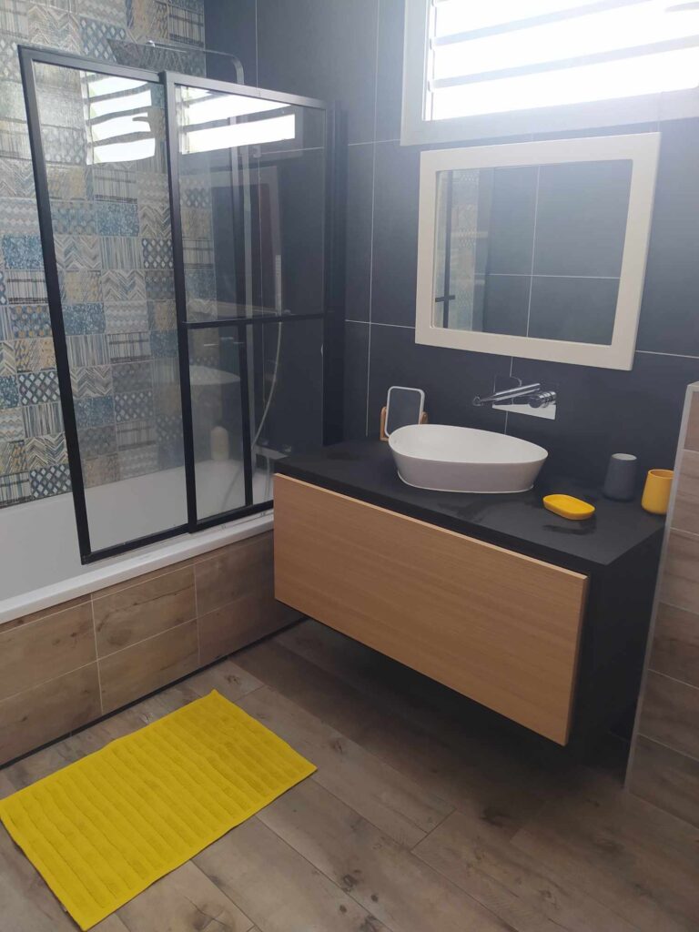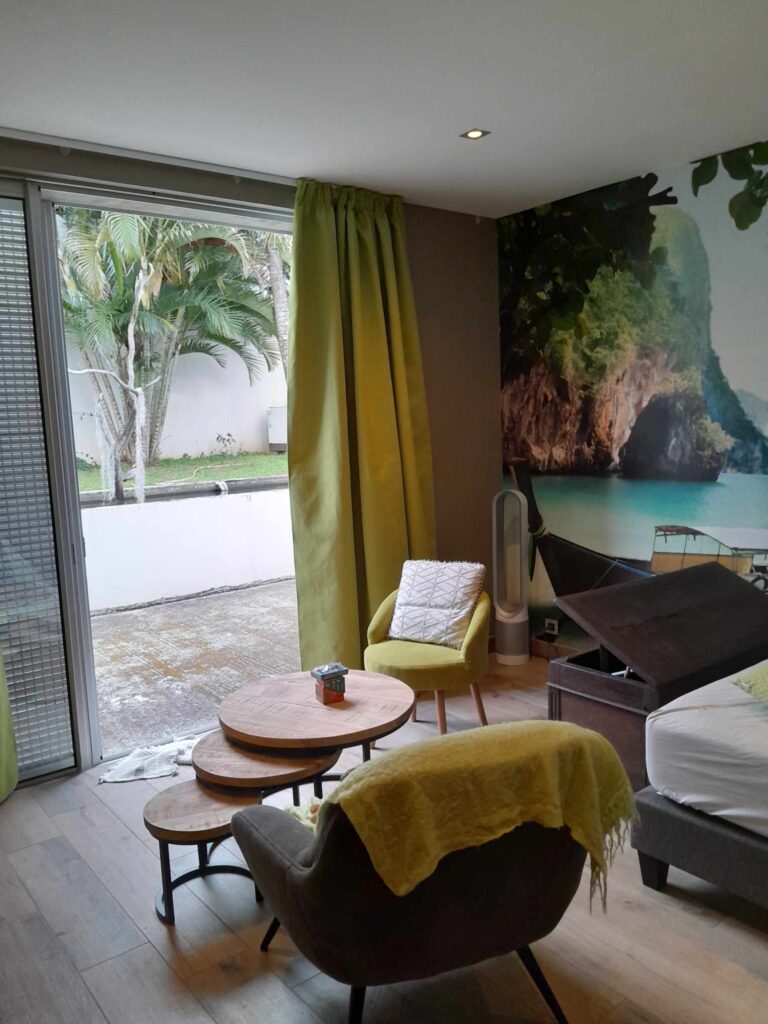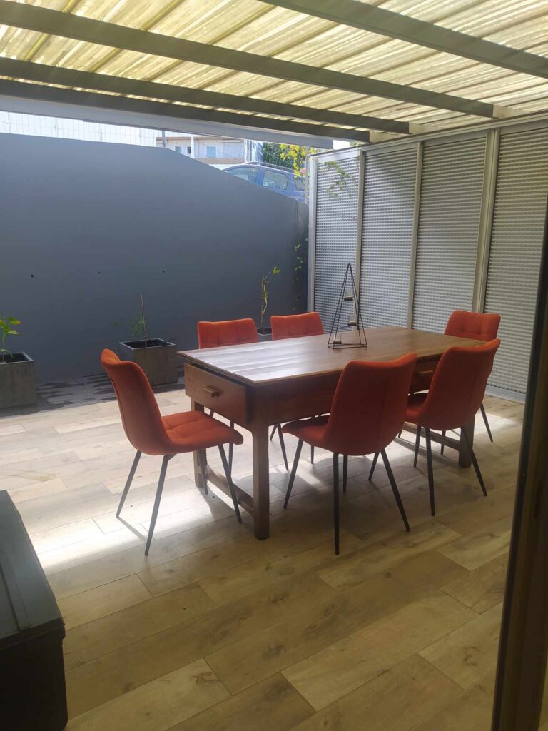 Salon / salle à manger donnant sur belle terrasse fermée et couverte
