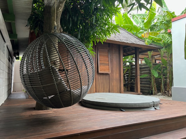 Un jardin arboré avec des arbres fruitiers et un spa-pool agrémentent la vie au quotidien