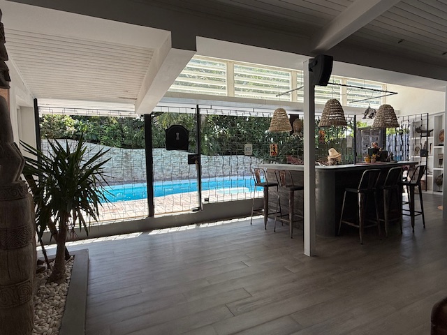 - un séjour patio avec bar et cheminée coté piscine
