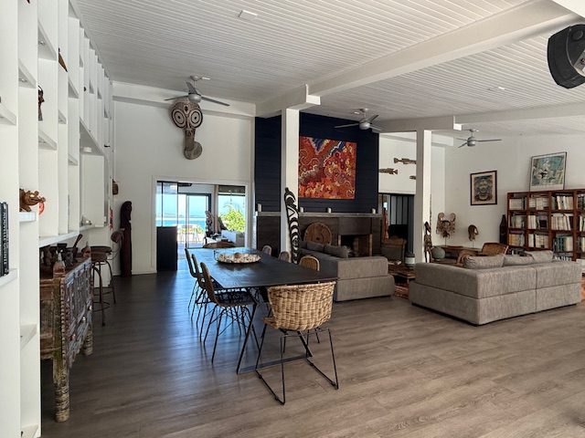 - un séjour/SAM avec cheminée donnant sur un deck de 80 m², idéal pour recevoir vos amis
