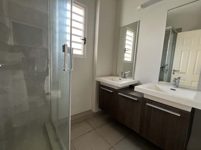 A l’étage : Trois chambres climatisées, une salle d’eau avec WC